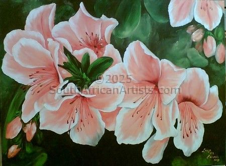 About Lariza Lariza van Emmenis (born in 1977), had a lively interest in art since early childhood. After she matriculated, she began a full-time career in art, following in the footsteps of her mother and mentor, well-known artist Paula van Emmenis. She works mainly in oils and acrylic, on canvas. Her work also includes paintings on ostrich eggs, leather, slate, and wood. The wide variety of South African fauna and flora serves as her main source of inspiration. Her favorite wildlife theme is the beautiful big cats of Africa, especially the lion, leopard and cheetah. Lariza enjoys portraying her subjects in realistic colors, with attention to depth and detail. But she also loves experimenting with different media, often adding a very contemporary effect to her paintings with texture, as well as rich and vivid colors. Price Range US$ 147-337 Education BA, BA (Hons), MA, D.Litt et Phil People who chose Lariza's work also chose work by: Find other: