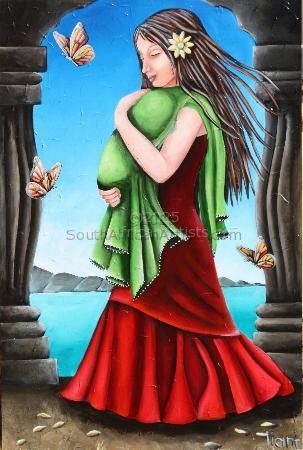 I like all the simple things in life and my biggest wish is for my family and all the people I love and surround me to have peace and happiness within themselves.I do not have any art education background and paint everything that comes to mind.I use acrylics and other media including little mirrors. This makes it possible for the viewer to reflect himself and become one with the painting.My children and my passion for people together with my family inspire me to paint and to try and make the world a better place for all. There is so much sadness and negativity in our world today. By using bright colours and messages of faith, love ,peace and unity I try to make life a little brighter.Reminding people that there are still so much beauty and brightness and good in our world. Little life lessons that we all so often forget in the struggle to fit in and survive.