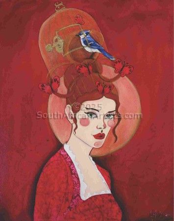 I am an artist & designer, based in Pretoria, South Africa. Wife; and mother to three ingenious children. Full time mom (stepmom to a dog and one mini hamster), ....and a recovering perfectionist. I was born an artist; I was drawing and painting before I learned to write my name. My deepest desire is to honour God with my life.... My formal training is in the form of an under-graduate degree in design, and fine art and my informal training from nearly four decades of creating. I have worked as an artist, illustrator, designer, set painter and art teacher. I love the smell of paint, the texture of a new canvass and vintage patterns. I am happiest when I am creating. [0x1] Paintings in private collections all over the world [0x1] Private commission work [0x1] Establish, develop and manage an art school [0x1] Solo and art-association exhibitions [0x1] 1st place, best painting technique, Centurion Art Association Art Competition [0x1] Designer, Architectural design at Interior Design Company [0x1] Freelance graphic design [0x1] Commissioned work in decorative and theatrical murals Melanie Stapelberg is an artist based in Pretoria. Her paintings are influenced by Victoriana, Tudor, Art Nouveau and Gothika. Stories, old photographs and ephemera, daydreams and fairytales and pattern and more patterns. Some of her stylistic references are to art history, including the Renaissance, Baroque, Victorian decorative art, Romanticism, and antique botanical imagery; these influential art movements, combined with her own concepts, elicit painting compositions that are seductive visual feasts of fruit, flora, wildlife, pattern and beauty laced with brooding undertones. Working with oil paint and collage, Melanie creates dreamy worlds of strong mystical girls and bewildering creatures, focusing on the beauty of imagination and its dominance over time. She illustrates various situations for her female protagonists to interact with through symbolic elements in vague settings. These scenes often comment on the operating consequences of idealism and fantasy due to naivety and youth with two opposing forces at work: natural inclination versus cognitive reasoning. These rival dualities are further represented by stylistic differences and the contrasting mediums of found ephemera and painting. There is deeply personal meaning to be found as the multi-layered struggles depicted in her current body of work reflect her interests and concerns as a growing woman with a penchant for idealism.