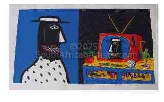 In 1969 he held his first solo exhibition consisting of oil paintings on wood, bone, wire and an assortment of found objects. His art has since undergone several metamorphoses, from the pristine airbrush paintings of the 70s to the frenzied, ritualistic mixed media works of the early and mid 80s; the wire sculptures and tin can works of the late 80s, and the primitive-futuristic paintings of the early 90s which provided the seeds for his pre-millennial menagerie of anthropomorphic beasts. In the thirty years spanning his past and present output, Catherine[0x1]s visual trademarks have included rough-edged comical and nightmarish forms, rendered in brash cartoon colours. His idiosyncratic vision - a combination of dark cynicism and exuberant humour, as well as his innovative use of everyday materials, has secured his place at the forefront of South African contemporary art. Hazel Friedman