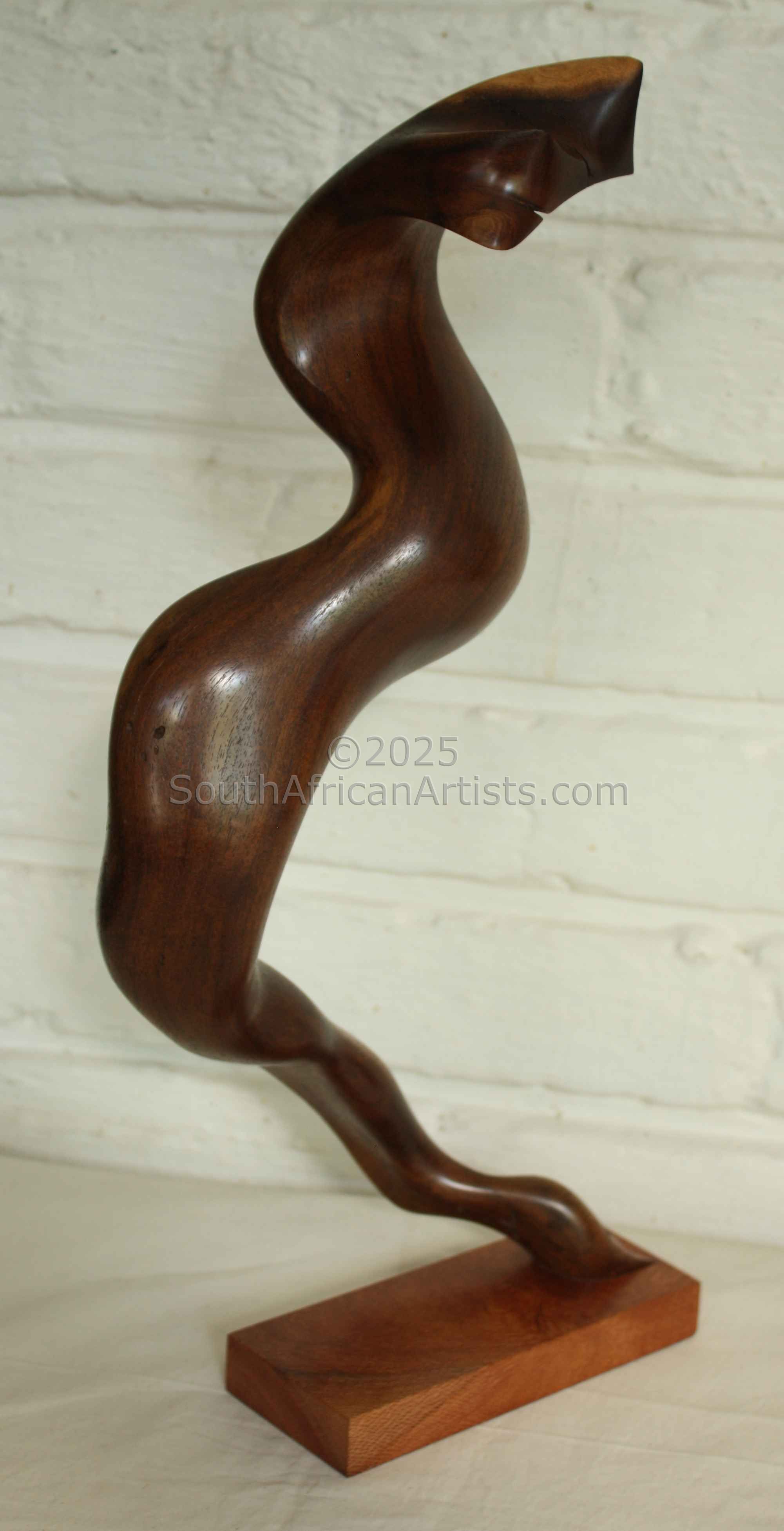 I am an electrical engineer and construction project manager by profession with a passion for creating abstract sculptures from dead wood, tree stumps and drift wood. I was born in Zimbabwe and moved to South Africa when I was 10 years old. It was in the small town of Nelspruit where I first discovered the intricate shapes and diverse forms of weathered and termite eaten tree stumps. My first collected pieces inspired me to explore and learn the various wood carving and finishing techniques. The ultimate objective being to reveal and highlight the wonderful colors, grain patterns and abstract shapes and forms hidden within the found local indigenous wood specimens. Due to the unique twisted and contorted shapes of the wood used, my work is inherently abstract in nature and form and each completed piece is therefore a one of a kind creation. My preferred method for shaping the sculpture is with hand chisels, which allows me to have a closer more intimate feel for the shape and form I wish to create. I resort to machinery only where it is required for the rapid removal of large quantities of wood or where the wood is too hard to be worked on by hand tools. I prefer traditional finishing techniques using various grades of sand paper culminating in a final polish of 1000 grit and 0000 wire wool. The sculpture is then treated with an oil based product and finally finished of with antique furniture wax. I strive for perfection where ever possible. I was fortunate to be selected in the top 100 for the 1999 ABSA Atelier Competition. Price Range US$ 1,000-1,000 Education Bachelor degree in electrical engineering, Self taught artist People who chose Ross's work also chose work by: Find other:
