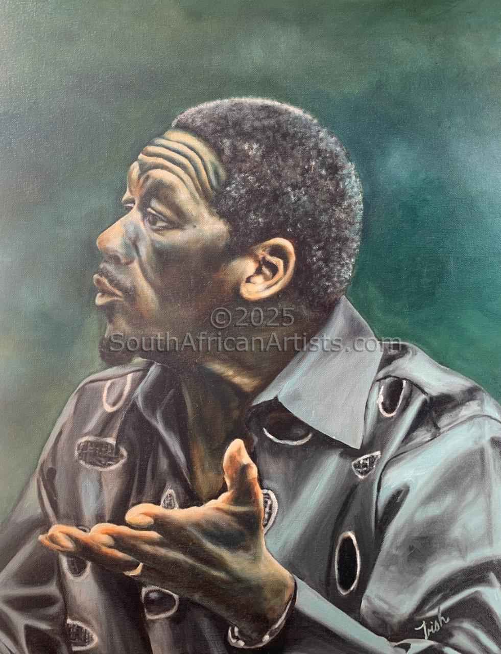 After seeing her painting "Parks Mayeza", Trish was selected by the Department of Economic Development and Tourism, to submit a work for the 2010 Soccer World Cup. She completed "Crystal Ball: Soccer is my World, My World is Soccer" which reflects the hope and dreams of Township youth, that sport can take them to hitherto undreamed of possibilities. The painting perfectly described the Department's theme : "Western Cape - Talking to the World" and the painting was purchased for it's permanent and travelling exhbition.