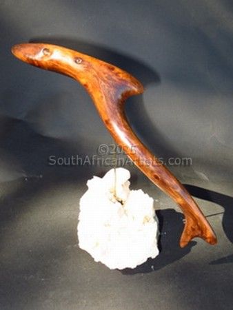 Nature and natural processes collaborate in the creation of my sculptures; wind, water,insects,and natural weathering all contribute to determining the subject. Stored sunlight in the form of the lignin in wood which is my favourite medium allows the energy of long gone sunrises and sunsets to shine through in the grain of the wood and the latent energy of this stored sunlight imbues creation with beauty. Price Range US$ 168-484 Exhibitions A percentage of profits will be donated to The Wilderness Leadership School. The selected pieces of wood that become sculptures have been exhibited in natures gallery in some cases for decades, on windswept shores, the hot baking savannahs of Africa and flooding rivermouths where they disgorge into the southern oceans. I happen upon them and recognise the hidden and sometimes not so hidden forms within them. Each piece also contains a story of hidden journeys. Education Transformative Wilderness guiding Specialist/ Natural Artist People who chose Wayne's work also chose work by: Find other: