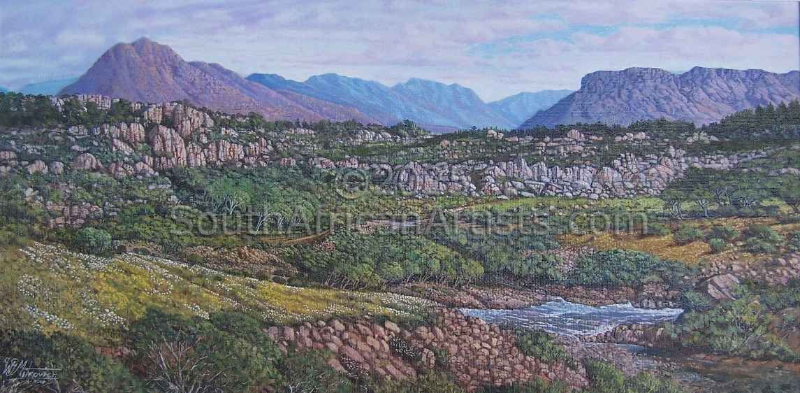 About William. G. Bill is an excellent landscape artist. Born with art in his blood. Travelled around a lot where he developed an eye for landscapes. He started painting full time in 1990 when he was commission to do 5 paintings of the Garden Route. In 1991 he moved to Cape Town where he met and married Caroline (who is also an artist on southafricanartists.com). He joined the Avenue Art Association and had 2 exhibitions per year in the famous Company Gardens in Cape Town. His paintings are found throughout South Africa and around the world (Germany, England, Holland, U.S.A., Canada, Australia, Singapore and even Tanzania.) Price Range US$ 65-2,065 Exhibitions Art in the Avenue;Kirstenbosch Gardens;Knysna market;George market;Oudtshoorn market;Veldrift WestCoast Education self taught, inspired by nature and life People who chose William. G.'s work also chose work by: Find other: