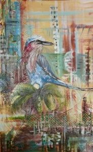 Reference city living mixed media About "City Living" Looking at nature and always marvelling at it and appreciating its wonder, it has always amassed me how nature and humans can fit together and adapt. A bird will make his home in the city dwelling. Humans in their destroying of nature in order to build their great cities they neglect to consider that nature still goes on. I think with mere thought we could build our homes and work places coinciding with nature |