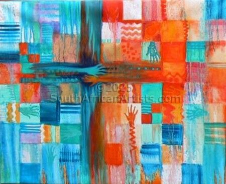 I love expressing my reaction to what I see around me in bold loose brushstrokes and vibrant colours, sometimes abstract, sometimes not! My themes and the way I express them vary widely. I used to work mainly in oils, but also use photography and collage to express ideas. The latest series of work uses encaustic and cyanotype. The melted wax brings a wonderful dimension of transparency and texture to the work.
