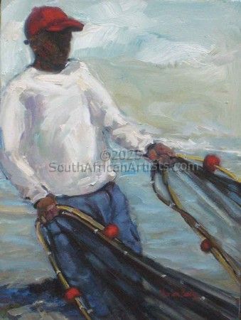 Fisherman on Fish Hoek beach, Cape Town, RSA