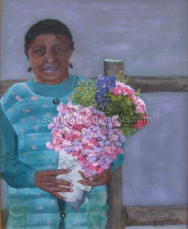 Reference 4 About "Flower Seller" This friendly flower seller in Constantia Cape Town with her beautiful blooms was a joy to paint on canvas |