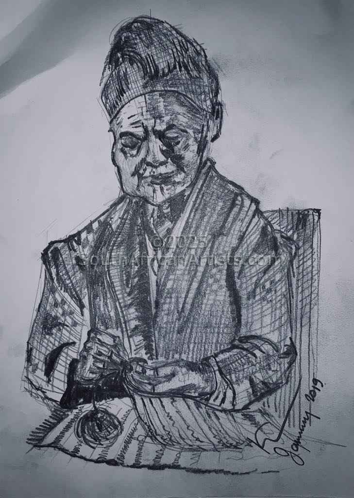 Old Woman Sewing