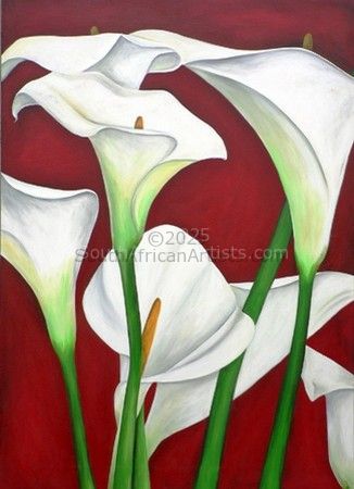 White Arum Lilies Against Scarlet