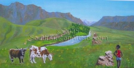 African Child Herding Cattle