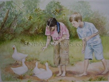 Children Feeding Geese