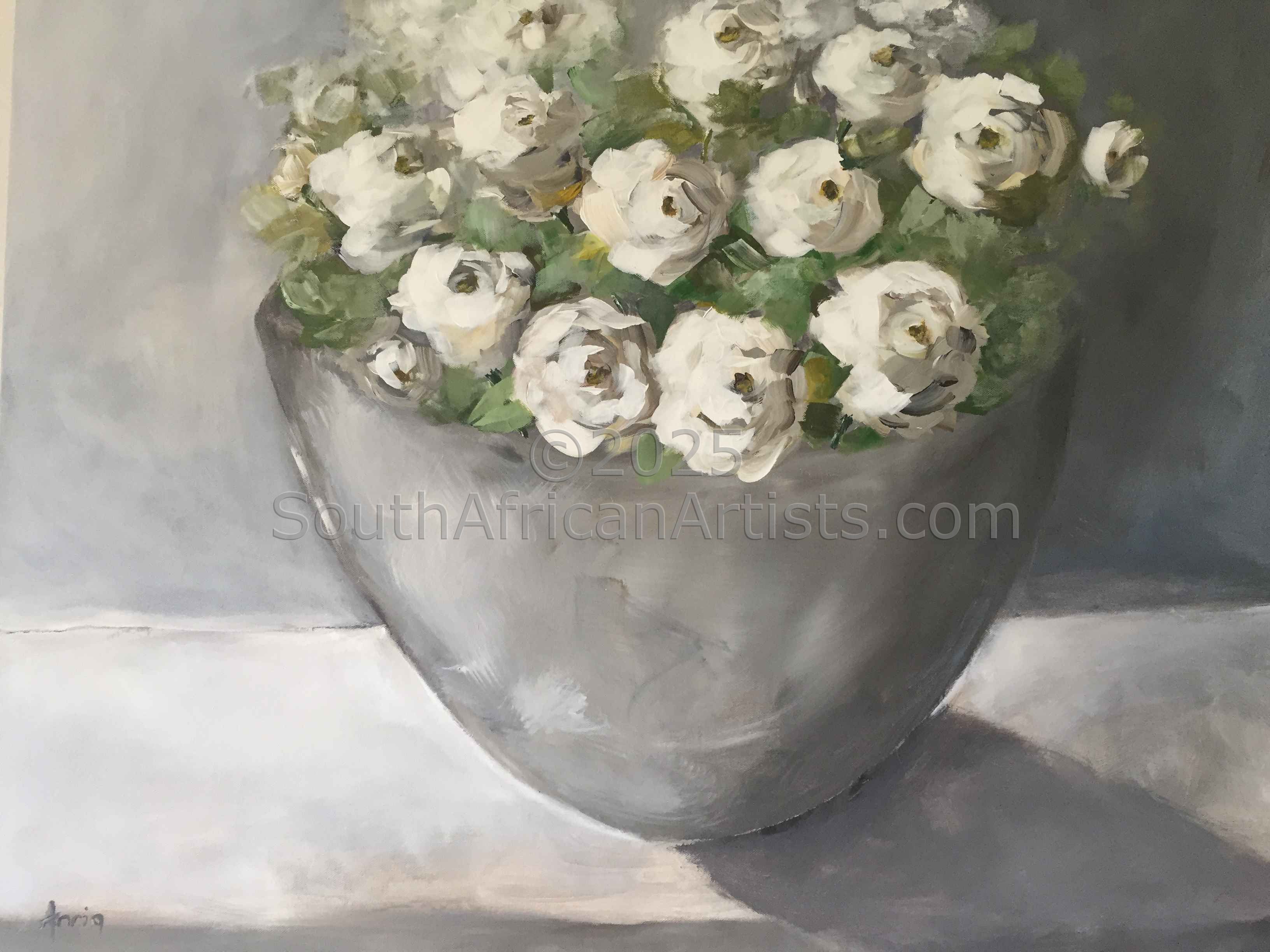 Yellow Roses and Grey Vase