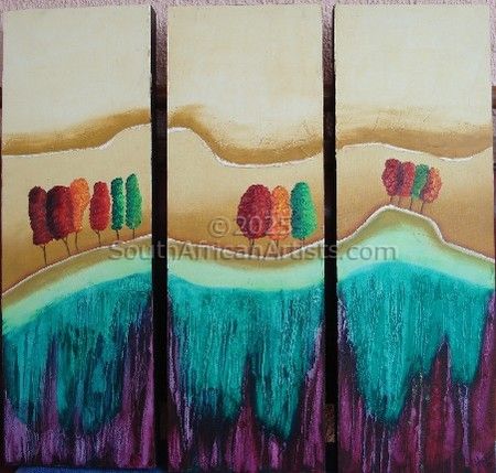 Autum Trees on Hill- 3piece
