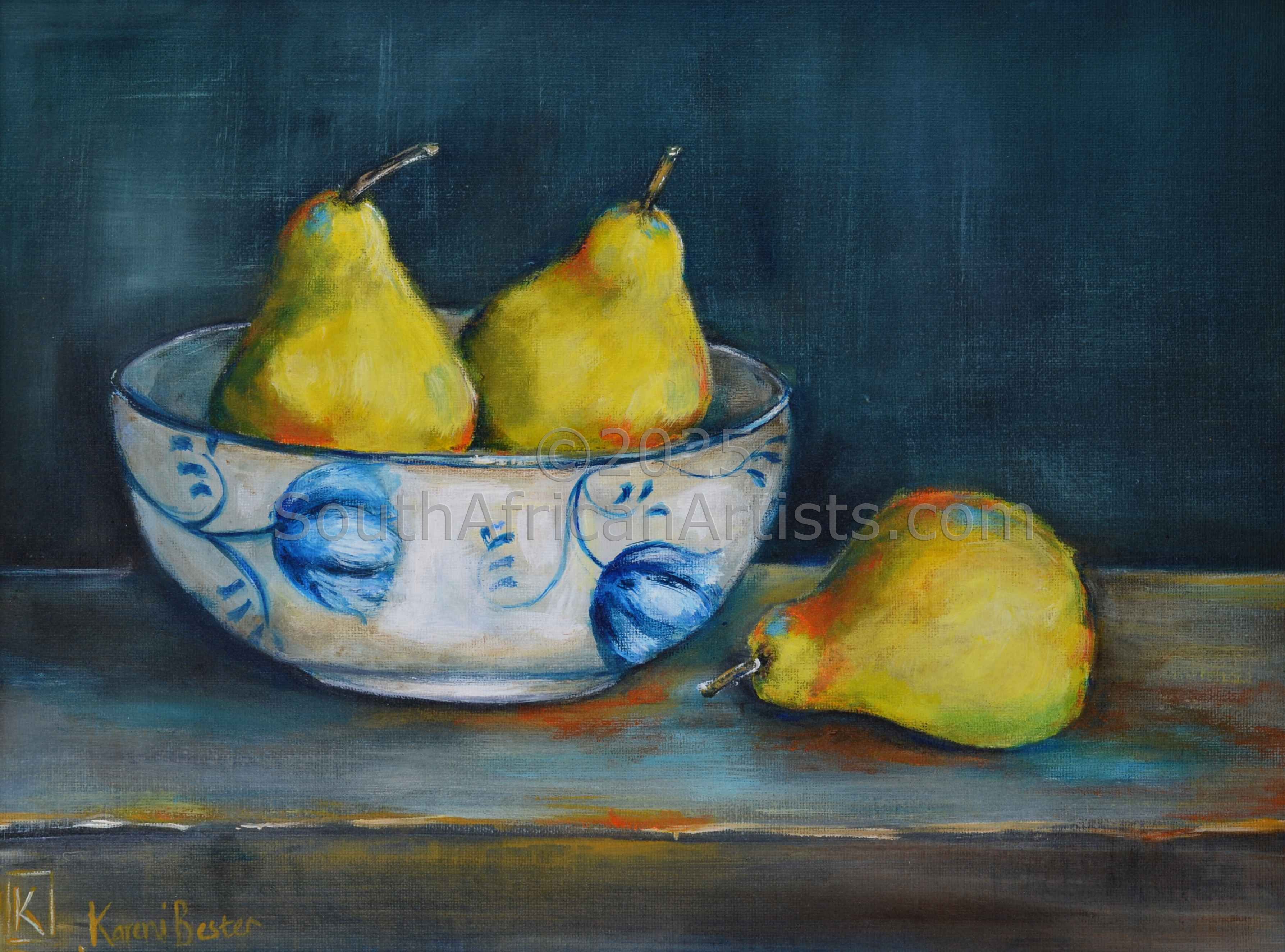 Two Pears in Antique Bowl