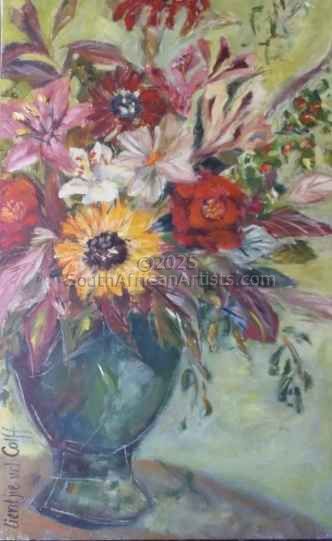 Green Vase with Mixed Florals