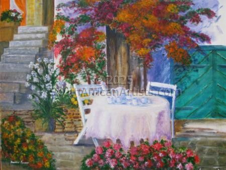 Having Tea in the Courtyard