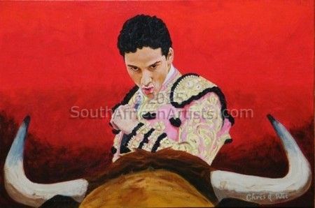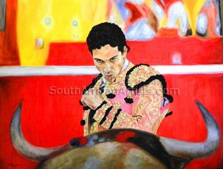 Matador and bull eye to eye