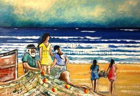 Fishermen Mending Nets