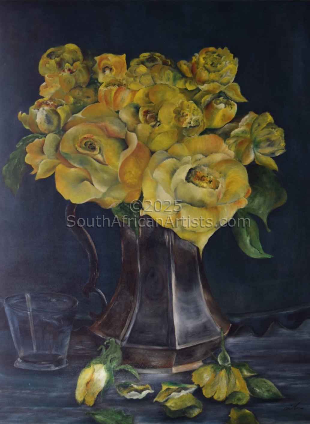 Red Roses in Pewter Coffee Pot
