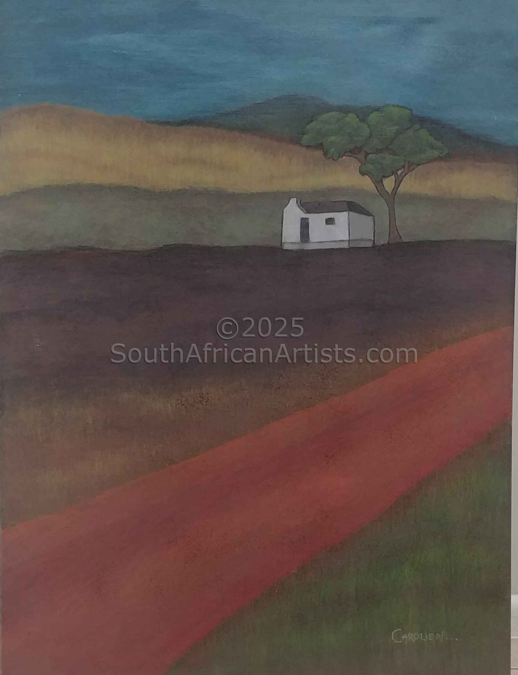 Farmhouse and Tree on Overberg Fields and Road