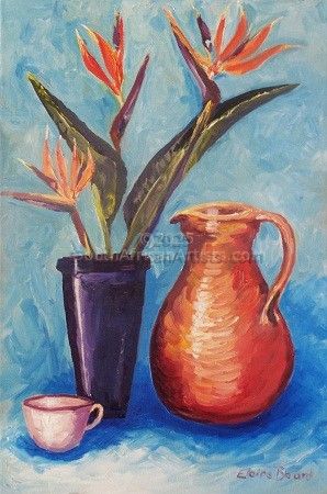 Strelitzias in Blue Vase