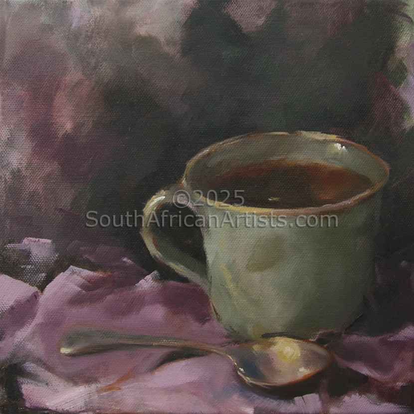 Green Teacup on Pink Cloth