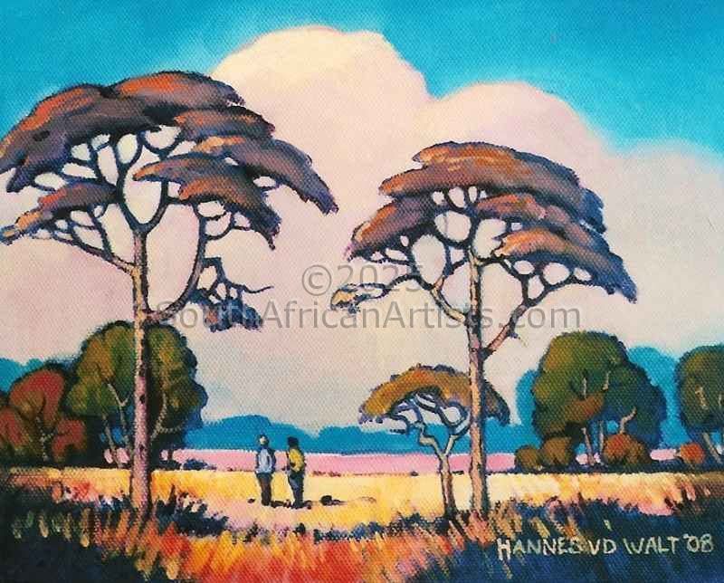 Peaceful Stroll in Morning Light (Pierneef Style)