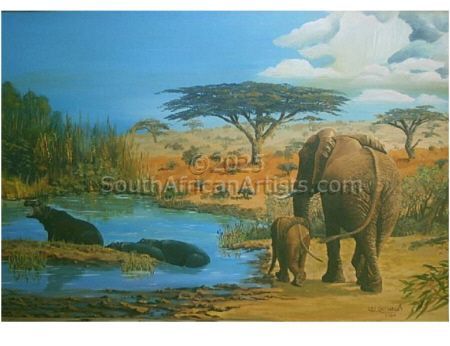 Elephants and hippos in the African Landscape