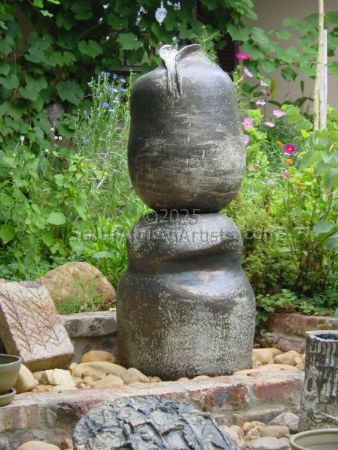 Hand built ceramic sculpture in two sections. Glazed with copper, manganese and iron oxide under dolomite glaze fired to 1260[0xC2BA]C in oxidation.