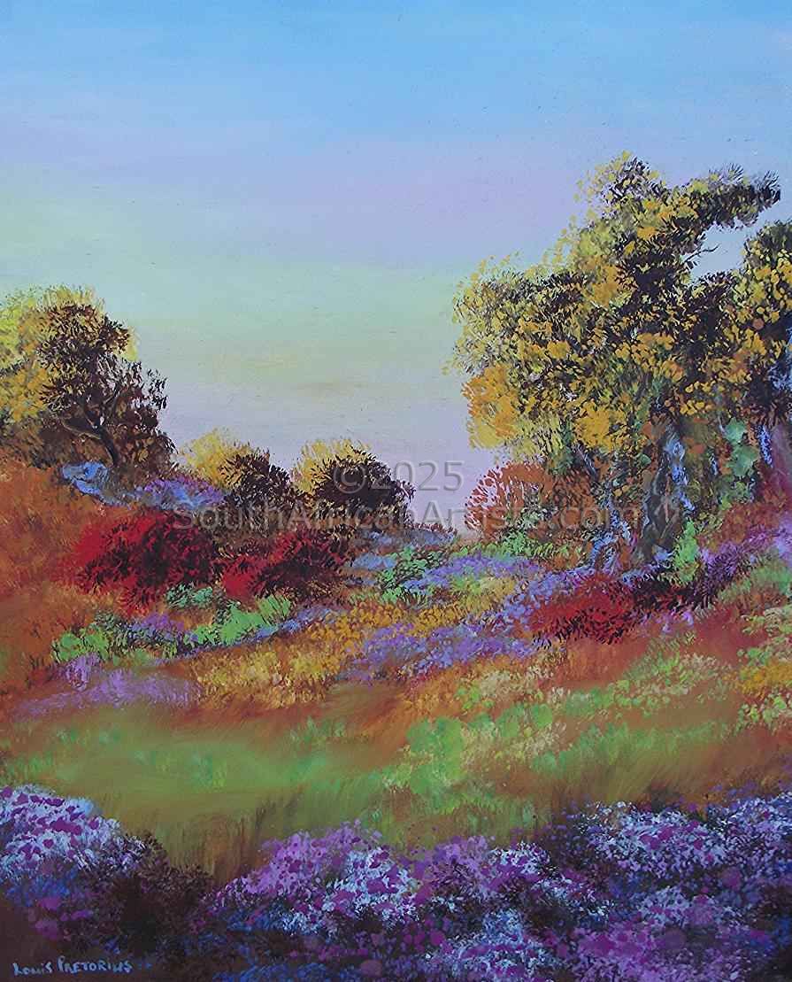 Louis Pretorius was born in Middelburg in the Karoo and grew up in Cape Town. He became a teacher in 1966 and started his art in 1971. For more than 30 years he has had many exhibitions in South Africa.Louis Pretorius is married to Emmie and since 1990 resides in Melkbosstrand. Louis has always found soul food in being creative - especially painting, which inspiration was strengthened when he spent some time to tour Europe and the Greek islands. Spending time in the museums and art galleries contributed to this ambition. He loves painting landscapes and is concerned with Man's abuse of Our World, so endeavours to capture the beauty of nature through his paintings. "Art is the best way to escape without leaving home...." Louis insight and passion for art is evident in his unique artworks which bring warmth, depth and beauty into a room.