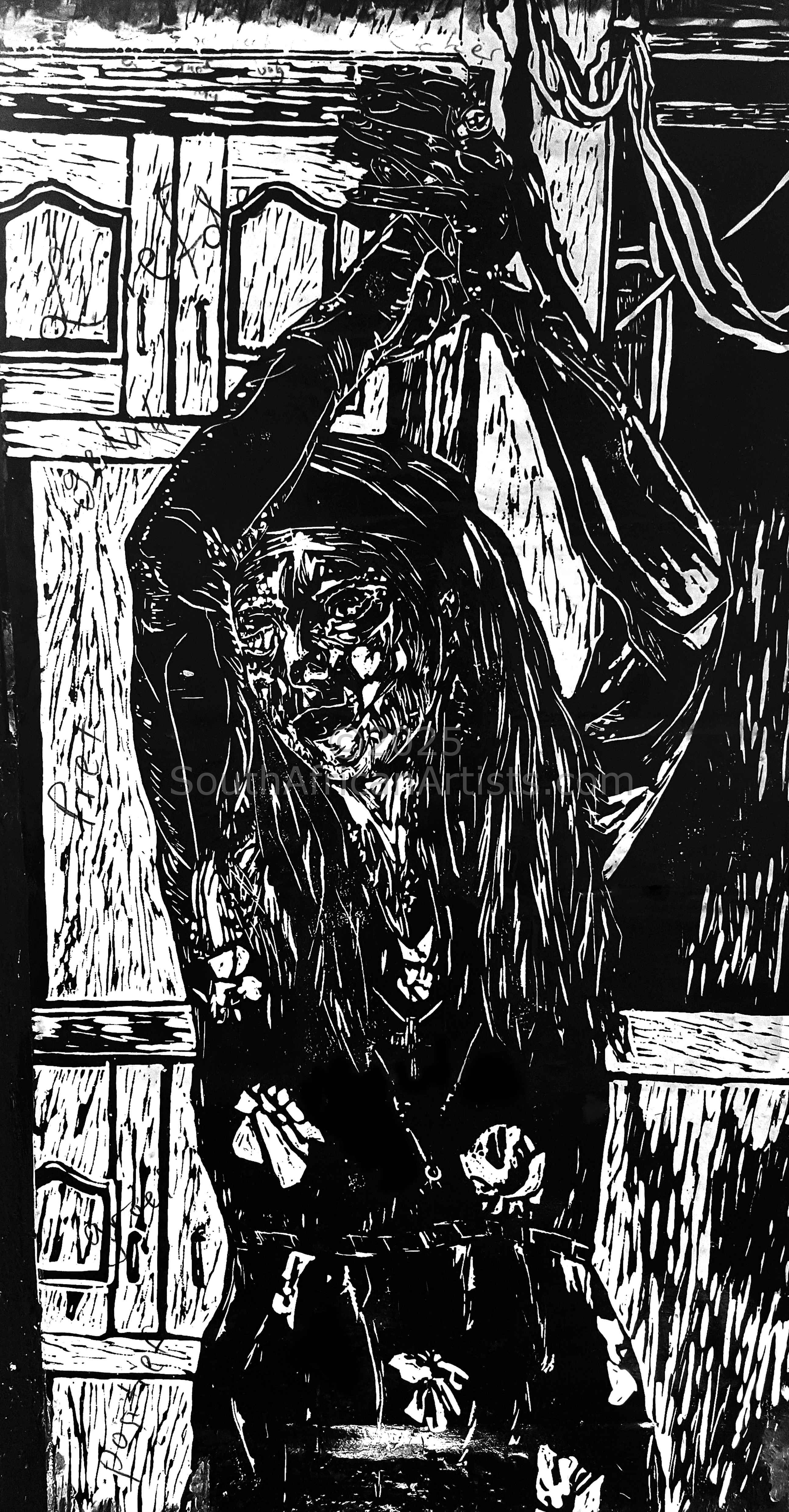 Fransi Nieuwoudt - "Lino-Cut Self Portrait" |