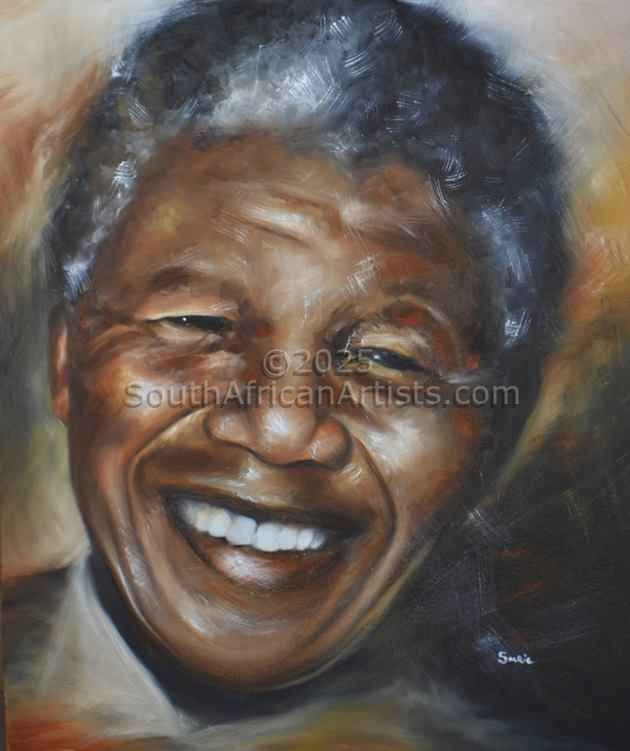 About "Madiba" Trying to create the Madiba Magic in the rich warm colours, this portrait of Nelson Mandela inspired me to show the world the humanity of the most famous South African of our time. |