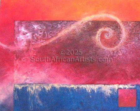 Reference 2002 About "New Beginnings" The African sunrise with it's play of gold, orange, and red over the blue of our seas inspired this. The ever-flowing spiral of life, changing as the tides, contrasting with the constant blocks of stability in life. |