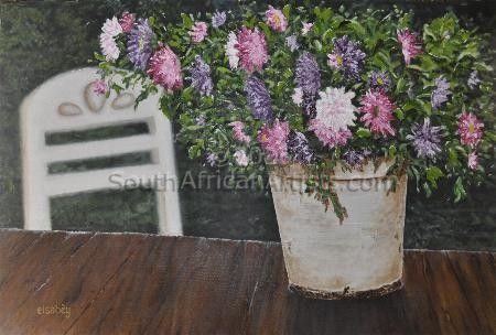 I see colour and frames wherever I look. I've been drawing since early childhood, won my first art prize at the age of 8, started with acrylics 25 years ago, moved on to oils and prefer the briliance of this medium. Price Range US$ 89-480 Exhibitions Kyalami, Witbank, Middelburg, Kaapsche Hoop, Nelspruit. Education Teachers degree, trained under Shelley Adams, Dale Elliot, etc People who chose Elsabèy's work also chose work by: Find other: