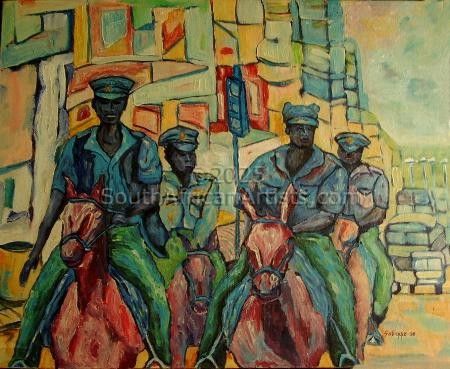 Reference policemem About "Police Patrol" police on horse back always are a marvel to watch, but these brought a sense of awe to people around me that day.My painting seeks to invoke from you your feelings about policemen on horseback! |