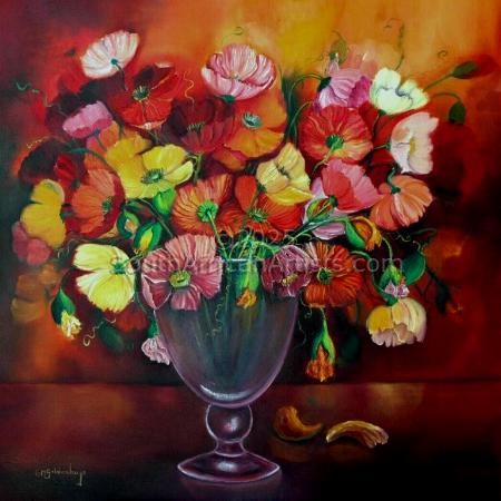 Reference POP 001 About "Poppy's in Vase 1" This is a painting that will bring colour and the outside garden into your home. It's colourful and full of life, it looks so real that you feel like touching them. |
