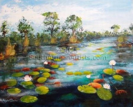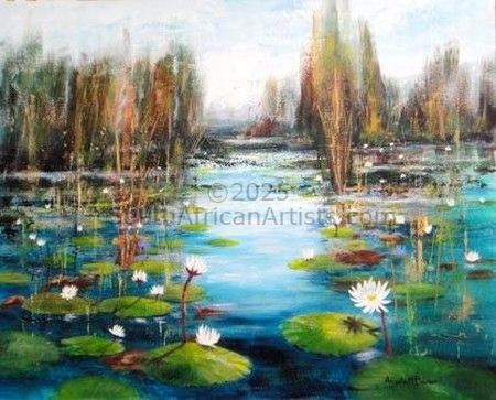 Light excites me, especially shining through trees, on water and even on fur. I love to travel and see the world through the eyes of the old Masters, particularly the Impressionists.I try and capture that "special place" where the heart can rest for a while, away from the turbulence of our world. Price Range US$ 68-395 Exhibitions Taken part in many exhibitions at the Watercolour Society of South Africa from 1998-2004,including a solo exhibition. Also part of the (then) Tiley Gallery in Clarens (2000-2005). More recently my art can be viewed at my Home Gallery at Waterfall Hills, and through several exhibitions with the Ivy Artists around Johannesburg. Education Watercolours with Sue Kemp, and then self taught in acrylics. People who chose Angela Mary's work also chose work by: Find other: