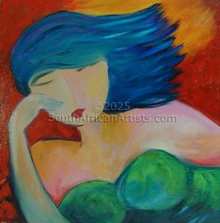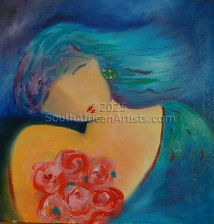I have been painting for more than 30 years. I have exhibited extensively in this time, having solo exhibitions and participating in many group exhibitions in major cities in South Africa. I have also had a one-man exhibition in Florida, USA and have collectors throughout the world. My colour palette is strong and vibrant; I use a range of colours from saturated primary, secondary and tertiaries, right through to muted earth tones in some paintings. Colour is an important element in my work. From early in my art career I have explored the recurring theme of women and human relationships. My recent work reflects the love, mystery and solitude of modern Women which I refer to as Modern Goddesses. They have anonymous faces and fluid bodies,they transcend reality and express the feminine aspect of human nature. They reflect the graceful movements of human emotion where warmth,charm, joy and love reside. The Modern Goddesses, in my paintings celebratemothers, sisters, daughters, lovers, wives and friends. There is an element of whimsy and fantasy to my work- I transform and interpret information or reference into personal visual statements where the viewer can relate on a personal, subconscious and emotional level. I paint in oils and acrylics. See my SPIRIT PAINTINGS. I use your date of birth,astrological signs, guardian angels, elementals, gods, goddesses,totem animals, archetypes,flowers, colours, crystals, instruments, and elements etc.