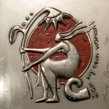 In 2004 Martie discovered pewter as a medium. In working with pewter, she found her love for layering, abstraction and self expression combined. Pewter offers a three dimensional quality to otherwise two dimensional abstractions which leads to multi faceted products, and suites Martie[0x1]s graphic approach. Pewter also offers the artist the ability to age the medium; therefore being able to decide how much [0x1]time[0x1] should be part of the final product.
