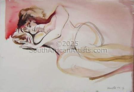 "I look upon my Watercolours as poems - smaller work (landscapes or nudes) done quickly on the spot. The acrylics are like novels - bigger, worked on for a longer period of time, layered. Here I usually explore a poetic or mythological theme." She often listened to Bach every morning "to purify the soul".