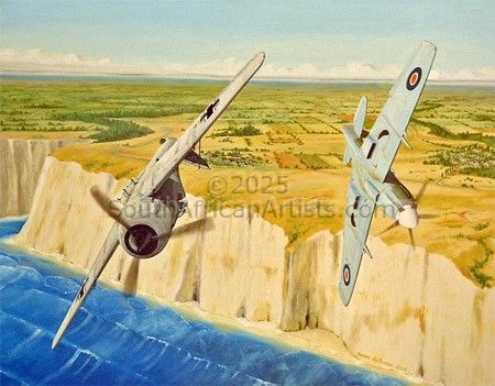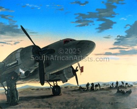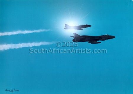 I immediately sharpened my pencils and dusted off the old box of oils. I decided to make time for my talent. I started mainly with aviation, military and automotive art and many commissions came my way. I was fortunate enough to be commissioned to do two 'First day covers' for the SAAF Museum. Later I was asked to provide nine paintings and drawings for the book 'Echoes of an African War'. After that the book 'A Pride of Eagles' included my painting 'Paradak'.