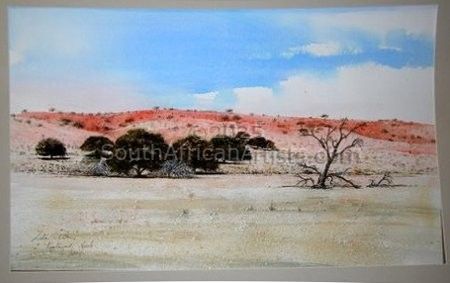 A self taught landscape painter using mainly water colours. Loves the trees and Kalahari landscapes.