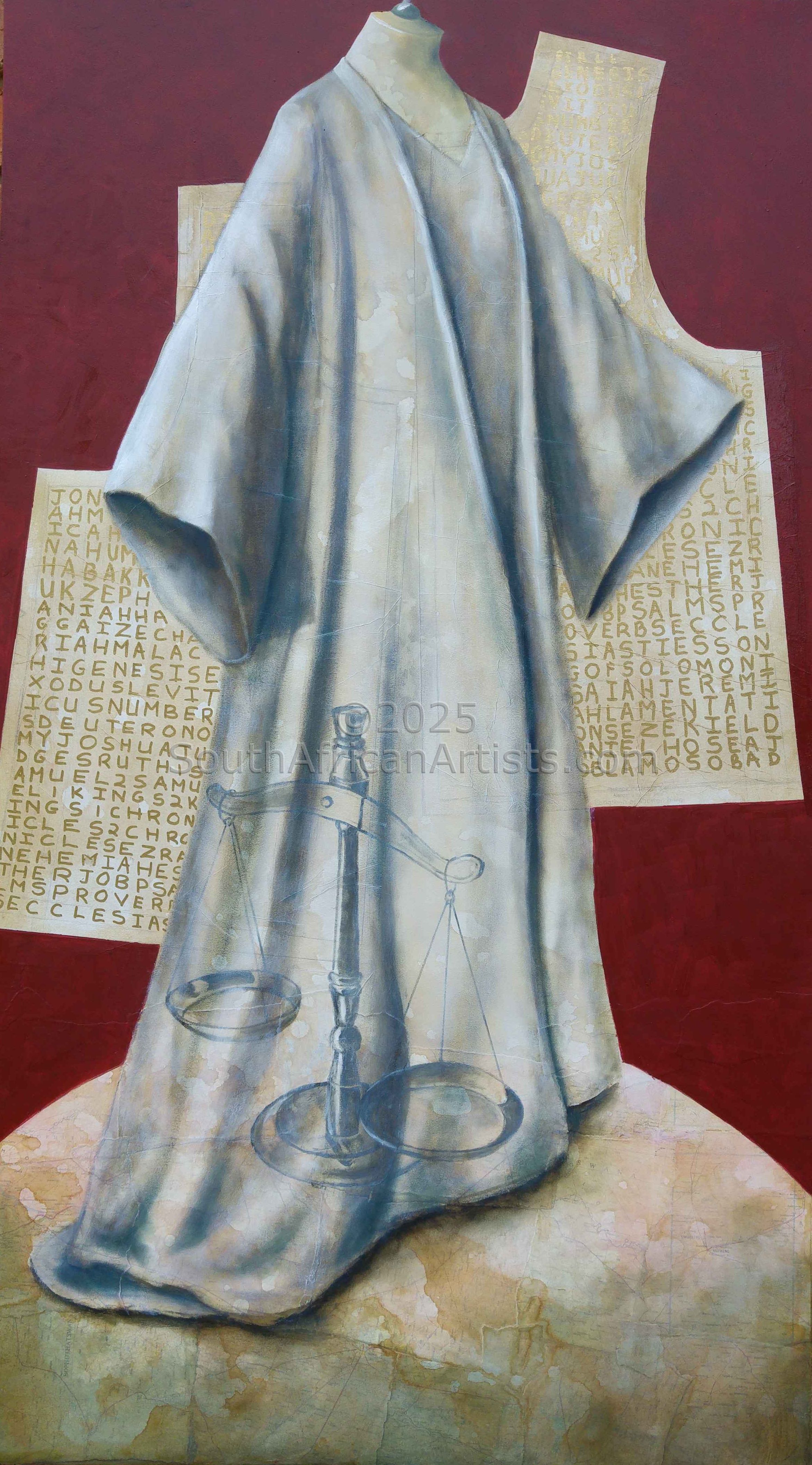 I prefer to use personal symbols, represented by images of every day simple objects, to express the essence of ideas, explore solutions and ask questions. I attempt to make suggestions rather than make statements. My work remains open-ended and allows the viewer to partner the creative process on an intellectual and an emotional level. I am constantly aware of my dependence on, and inheritance from, the Great Creator in whose image we are all made. My input is thus essentially that of hope, healing, redemption, refuge and salvation, providing a place of rest for the spirit. PRINTS OF SOLD WORKS ARE AVAILABLE ON REQUEST