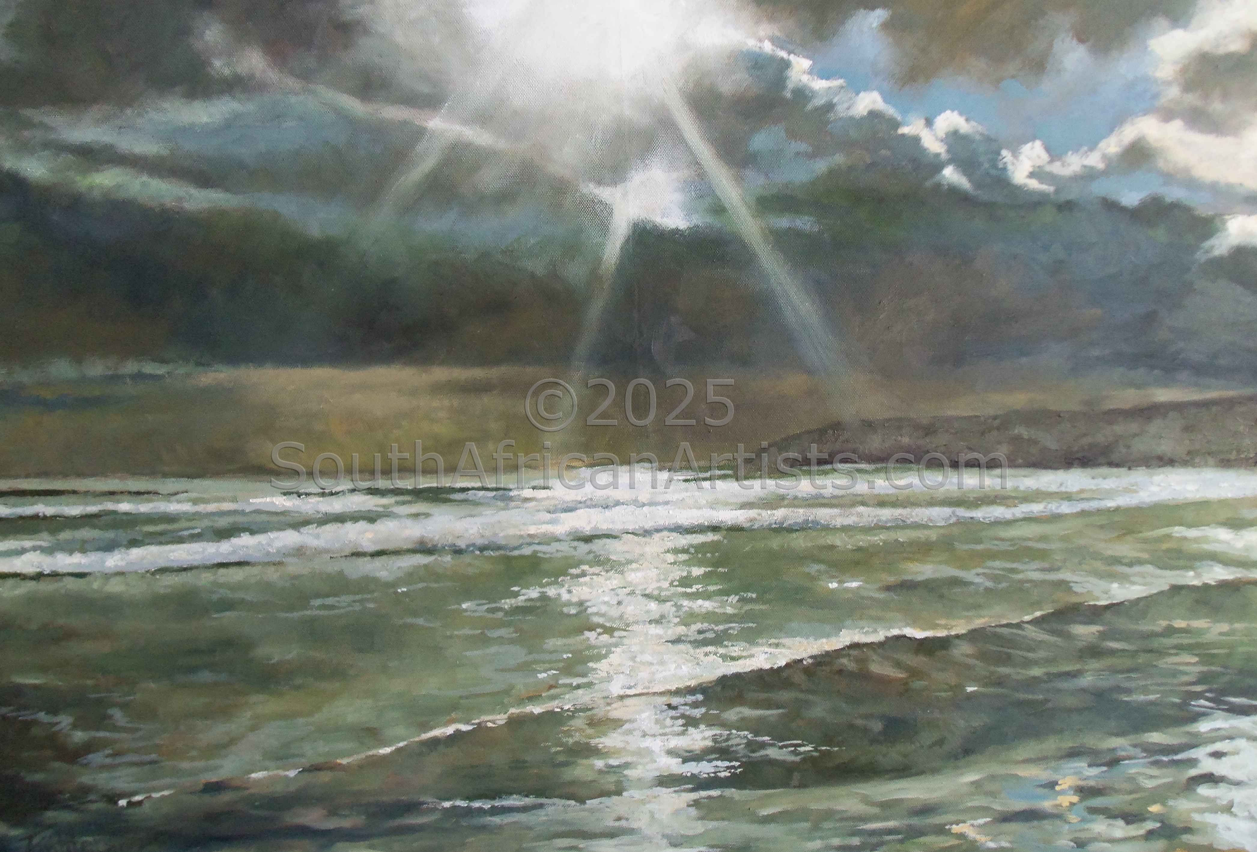 This has basically stimulated my art until now. The Atlantic Ocean on our doorstep out here in Grotto Bay on the West Coast of South Africa has been my "artistic challenge" ever since. To capture its essence has been my aim. Ever changing moods, light and weather show me new possible pictures to capture on a daily basis. Combining realism and feeling of this grand subject has been my conquest ever since.