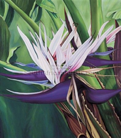 I live on the Bluff in Durban and due to the Bluff's elevation, it has the most spectacular sea views and this is the inspiration for all my seascapes. Durban is sub-tropical and has a lucious growth of beautiful flowering shrubs and trees. One does not have to go far, to be inspired to paint. I enjoy design, colour and texture to create an effect. Sometimes I paint the same flower in three different sizes, to be exhibited together. Ultimately I am a "design" artist, if that makes any sense.