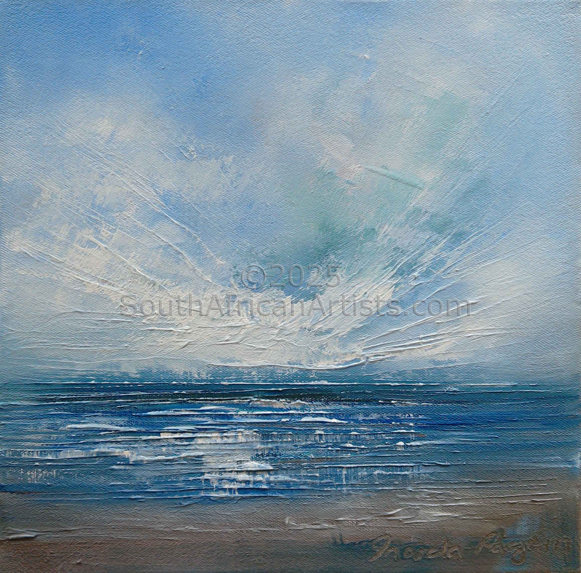 Water and sky fascinate me as it is ever changing. The use of brushes to soften lines and palette knife to add movement and ascents are done intuitively. To overthink a mark and plotting lines ruins the spontaneity and freshness of the work for me. I feel if I make a mark loose but sure and leave it, it will still have a sense of moving, ever changing. The work will not trap anyone in any one moment but always give the sense of being in motion. My preferred medium is oil paint as I love the texture and luxury of a slower drying medium that affords me the time to explore glazing and impasto techniques with my trusted palette knife and brush. On closer reflection, I would have to say that my work is a subtle and maybe sometimes expressive mix of tonalism and luminism Colour fascinates and sometimes frustrate me and exploring the different pigments and manufacturing results is an added passion for the hours spent in my home studio.