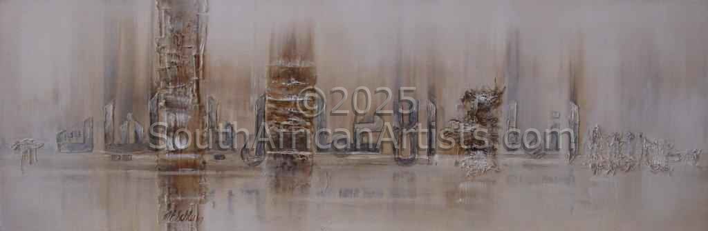 Mechtilde Schler was commissioned by Safmarine to do a painting of Simonstown for president Thabo Mbeki of South Africa....... She is listed, acknowledged or recognized by: 1 The Collectors Guide to Art and Artists in South Africa. 2 South African art info International Art Directory. 3. Saasveld Port-Elizabeth Technikon 4 W.I.R.E woman in rural enterprise). 5 Harper Adams University & 6 University Botswana (last 3 collaborating in projects). 7 Western Cape Cultural commission 8 Frank Joubert art school. 9 Somerset West Art Groups. 10 Invited by Dept. Education and Culture Bloemfontein... 11. Art Societies in Bloemfontein....................... 12. Strand art groups. and many art galleries in South Africa as well as overseas in Holland, America, Germany and Britain. Started educating disadvantaged as well as advantaged about 20 years ago, she started an art school named Art for All. She studied art for 2 years at Stellenbosch, and 2 years at Unisa. She has developed a new technique or medium and now paints, extremely expressively and uses a combination of ceramics, metals, pigments and acrylics as well as collage. This new medium is called "plak & pleister technique and being invited by artists worldwide to introduce this new medium to them.