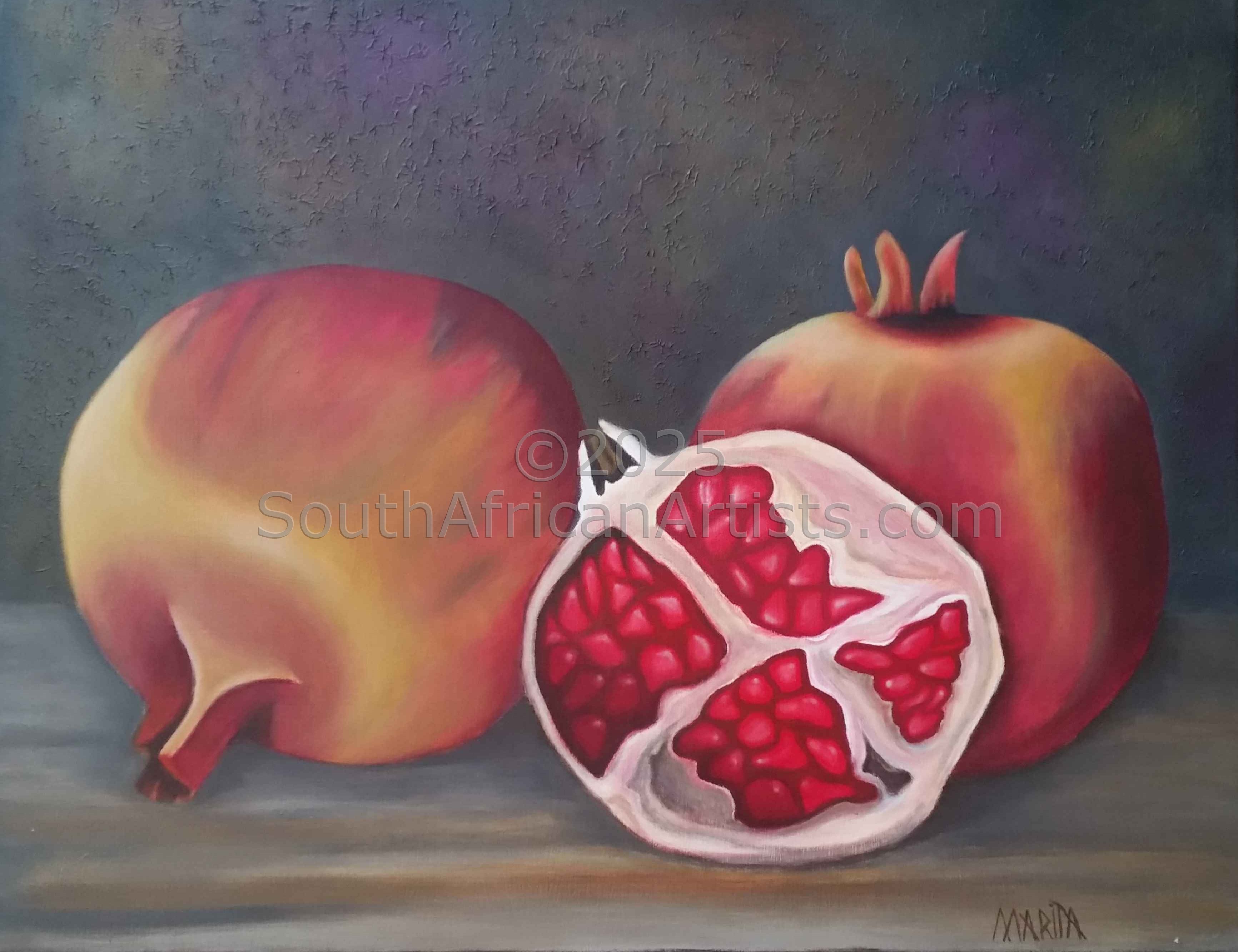 Marieta was born and grew up in Namibia. In 1991 the family moved to South Africa where they lived on a farm up country. After her husband passed away, Marieta moved to Cape Town where she was exposed to the art of painting and immediately fell in love with it. Marieta says: "When I became involved in this art form, I realized that I received the gift of drawing and painting and that it was my responsibility to develop this talent. Price Range US$ 84-365 People who chose Marieta's work also chose work by: Find other: