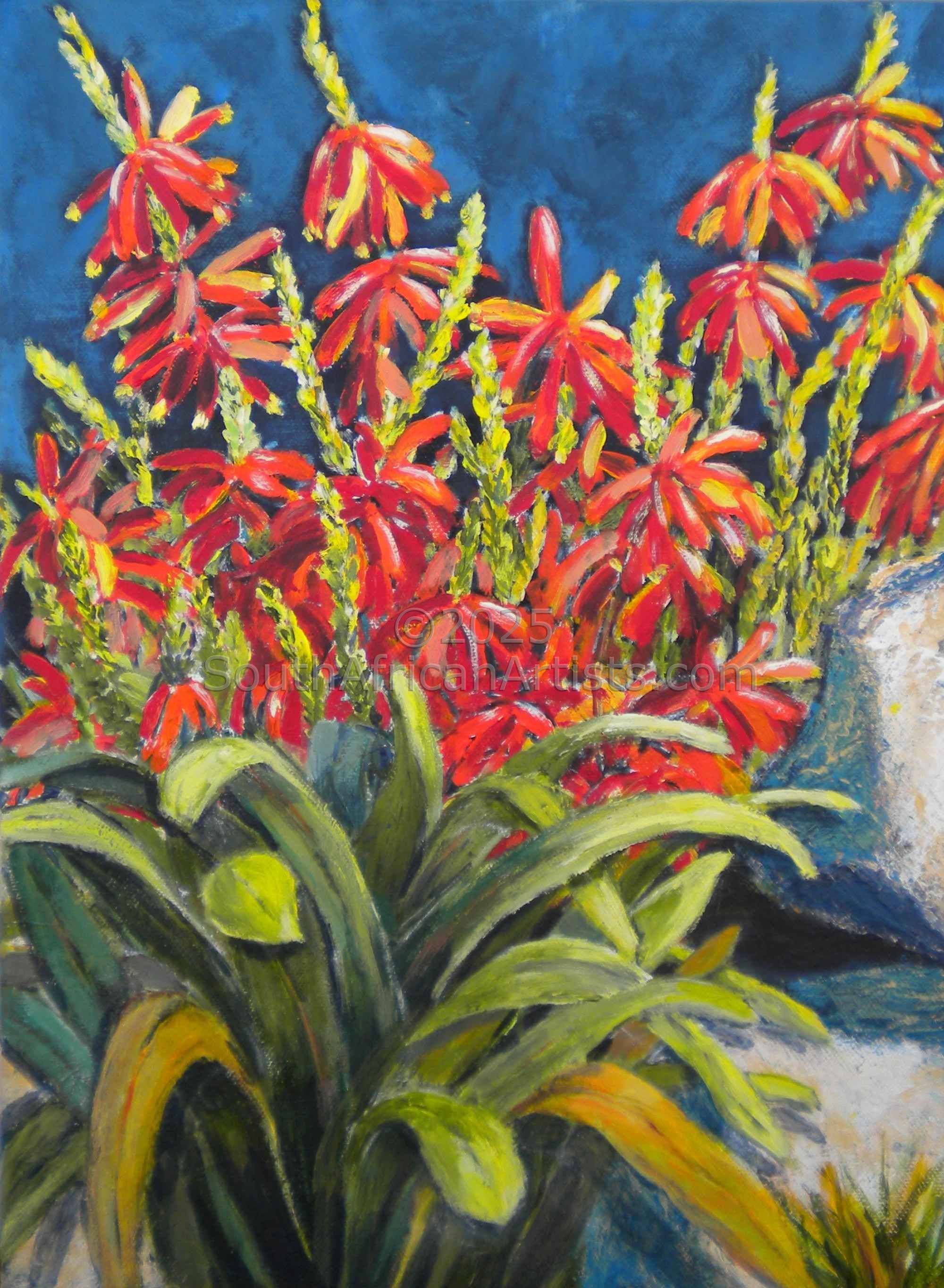 Leonie is versatile and paints wild life,still life, flowers, trees, sea life and seascapes as well as landscapes, cottages, Cape Dutch homes of Hermanus and the Overberg.